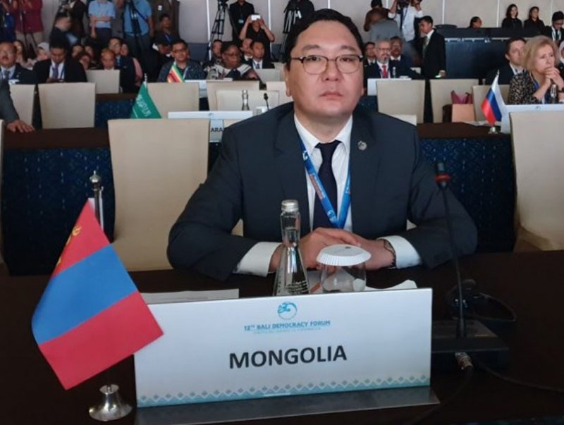 Индонезийн Бали аралд 12 дугаар сарын 5-6-ны өдрүүдэд болж буй “Ардчиллын форум”-д ГХЯ-ны ТНБД Д.Даваасүрэн оролцож байна. Бүс нутгийн түвшинд ардчиллыг хөгжүүлэх, харилцан туршлага солилцох болон яриа хэлэлцээний давтамжийг хадгалах зорилго бүхий Бали-гийн Ардчиллын форум нь 12 дахь жилдээ зохион байгуулагдаж байгаа бөгөөд 90 гаруй улс, 20 орчим олон улсын байгууллагын төлөөлөгчид хуран цуглаж, ардчиллыг хөгжүүлэх, хүний эрхийг бэхжүүлэх чиглэлээр харилцан туршлагаа солилцож байна.