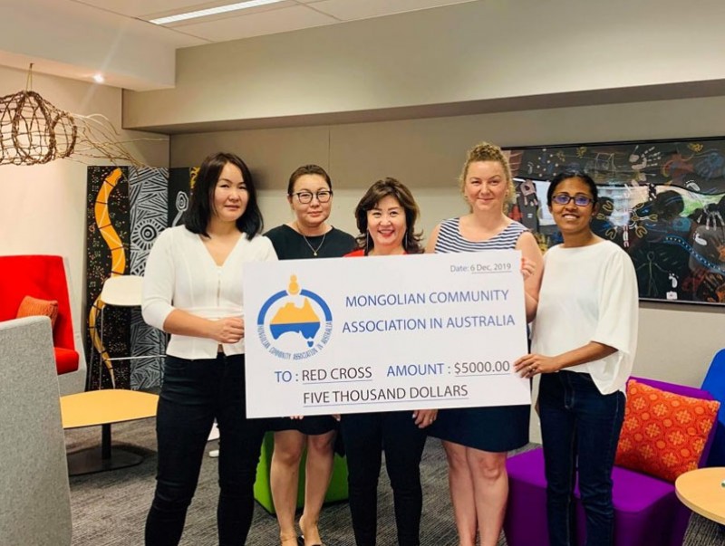 Австралид сурч, ажиллан амьдарч буй монгол иргэд, Австрали дахь Монголчуудын холбоо, Монгол Улсаас Австрали Улсад суугаа Элчин сайдын яамны ажилтнууд Австралийн зарим мужид дэгдээд буй ойн түймрийг унтраах, хохирлыг барагдуулахад сэтгэл санаа, санхүүгийн бага болтугай дэмжлэг үзүүлэх зорилгоор богино хугацаанд 5000 долларын хандив цуглуулсан бөгөөд хандивыг 2019 оны 12 дугаар сарын 6-ны өдөр Шинэ Өмнөд Уэльс мужийн Улаан загалмайн нийгэмлэгт хүлээлгэн өгөв.