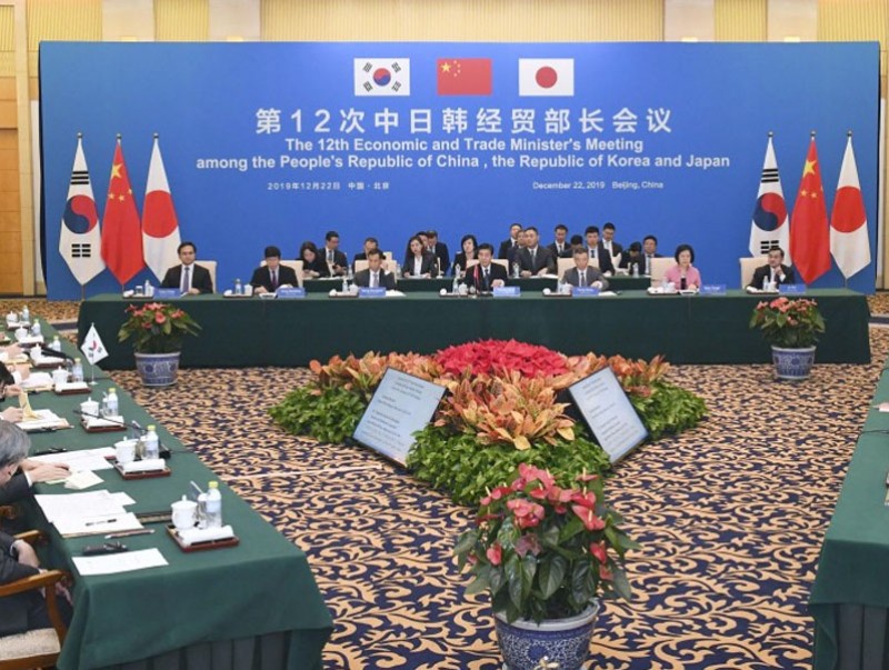 БНХАУ, Өмнөд Солонгос болон Японы худалдааны сайд нарын хоорондох уулзалт өнгөрсөн гурван жилийн хугацаанд анх удаагаа зохион байгуулагдлаа. Уулзалтад Хятадын Худалдааны сайд Жон Шан, Японы Худалдаан сайд Хироши Кажимаяа болон Өмнөд Солонгосын талыг төлөөлж Сүн Юн-мо нар оролцсон юм. Сайд нарын хэлэлцсэн хамгийн чухал асуудал нь Өмнөд Солонгос, Япон болон БНХАУ-ын хоорондох чөлөөт худалдааны гэрээ хэлцлийг байгуулах үйл явцыг түргэвчлэх асуудал байжээ. Үүний дотор Бүс Нутгийн Иж Бүрэн Эдийн Засгийн Түншлэлийн хэлэлцээр ч багтаж байгаа юм. Төлөөлөгчид олон улсын худалдааны нөхцөл сайнгүй байгаа энэ цаг үед Өмнөд Солонгос, Япон болон Хятадын хоорондох худалдааны харилцааг бэхжүүлэх туйлын чухал байгааг онцолжээ. Сөүл, Токио болон Бээжингийн төлөөлөгчид Ази Номхон далайн 16–орныг багтаасан Бүс Нутгийн Иж Бүрэн Эдийн Засгийн Түншлэлийн худалдааны гэрээг ирэх жилийн эцэс гэхэд батлах асуудлаар дээр хамтран ажиллахаар тохиролцоод байна.