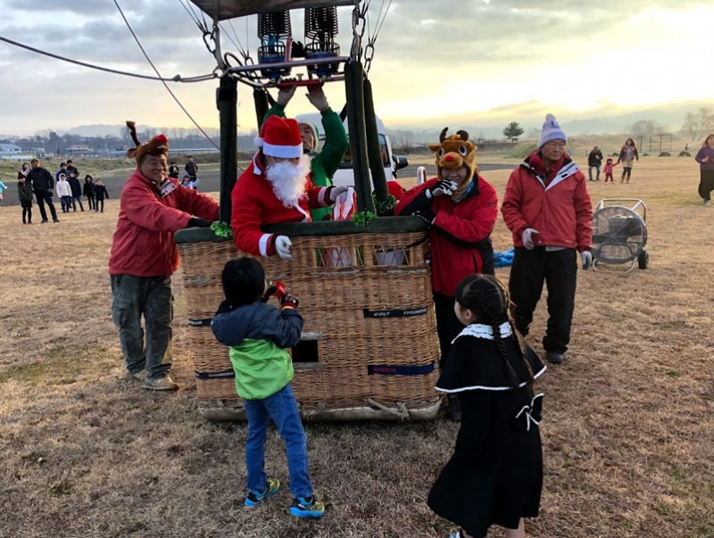 Нагано мужийн хүүхдүүд нисдэг Санта клаусаас бэлэг гардан авч байна. Тус мужийн Саку хотод хүүхдүүдэд бэлэг тараахаар зургаан ч агаарын бөмбөлөг хөөрсөн байна. Эдгээр агаарын бөмбөлөгт өвлийн өвгөнөөс гадны тэдний хамгийн эрхэм зүйл болох бэлгийг ачжээ. Нагано мужийн орон нутгийн агаарын бөмбөлөгний клубээс энэхүү үйл ажиллагааг жил бүр зохион явуулдаг юм. Энэ жил агаарын бөмбөлгийн тоог нэмэгдүүлж, аль болохоор олон айл өрхийн хүүхдүүдэд бэлэг хүргэхийг зорьж байна. Өнгөрсөн 10-р сард Нагано мужийг Хагибис хар салхи дайрч, иргэд амь нас эд хөрөнгөө хохирч нөхцөл байдал одоог хүртэл хүнд байгаа юм.