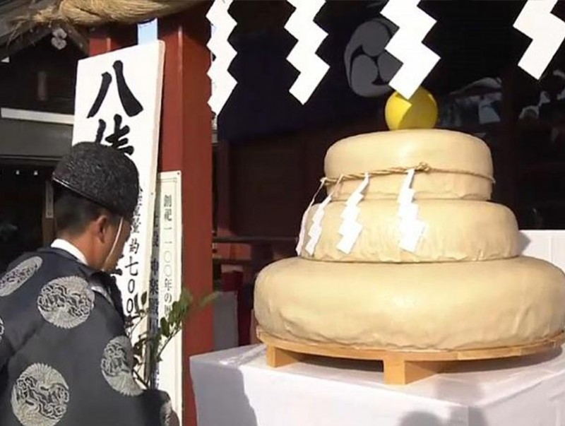 Японы Айчи мужид тариаланчид болон иргэд цагаан будаагаар аварга бялууг хийсэн байна. Энэ бялуу нь ирэх жилдээ эрүүл энх байж, элбэг арвин ургац хураахыг бэлгэдэж байгаа юм. Японы төвийн мужуудын нэг болох Айчид энэхүү будааны бялууг бурхан шүтээндээ өргөх ёслол болсон байна. Тус мужийн Нагоя хотод байрлах "Ацута Жингү" гэх шүтээнд жил бүр ийнхүү бялууг өргөх ёслолыг зохион байгуулдаг.
