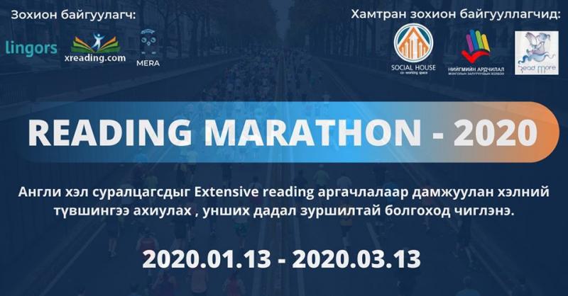 “Reading marathon-2020” энэ сарын 13-наас ирэх гуравдугаар сарын 13-ны өдрийг хүртэл хоёр сарын хугацаанд үргэлжлэх бөгөөд энэ удаагийн марафон нь ЕБС-ийн сурагчид (3-12 дугаар ангийн сурагч) болон насанд хүрэгчид (18-аас дээш насны бүх хүн оролцох боломжтой) гэсэн хоёр ангилалд явагдаж байгаагаараа онцлог аж.
