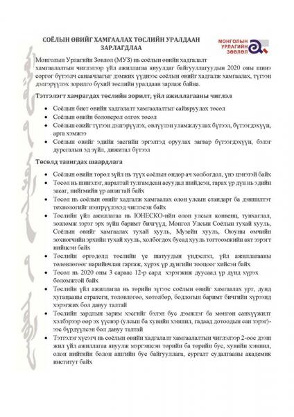 | Соёлын өвийг хадгалж, хамгаалах төсөлд тэтгэлэг олгоно | ||