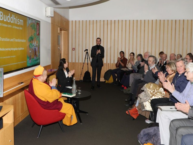 Британийн төв номын сангийн зүгээс Буддын шашинтай холбоотой соёлын өвийг танилцуулах, номын санд хадгалагдаж буй шашны ном, судрыг нийтэд дэлгэн үзүүлэх дөрвөн сарын аяныг зохион байгуулж буйтай холбогдуулан “Монголд буддын шашныг дахин сэргээсэн нь” арга хэмжээг Британийн төв номын санд 2020 оны нэгдүгээр сарын 20-ны өдөр Лондон дахь ЭСЯ-наас зохион байгуулав.