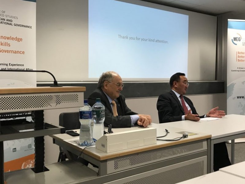 Монгол Улсаас НҮБ-ын Женев дэх төв, Дэлхийн худалдааны байгууллага, олон улсын бусад байгууллагын дэргэд суугаа Байнгын төлөөлөгч Л.Пүрэвсүрэн энэ нэгдүгээр сарын 28-ны өдөр Женевийн их сургуулийн Европын болон олон улсын засаглалын ахисан түвшний магистрын хөтөлбөрийн оюутнуудад Монгол, Орос, Хятадын эдийн засгийн коридор сэдвээр илтгэл тавив.