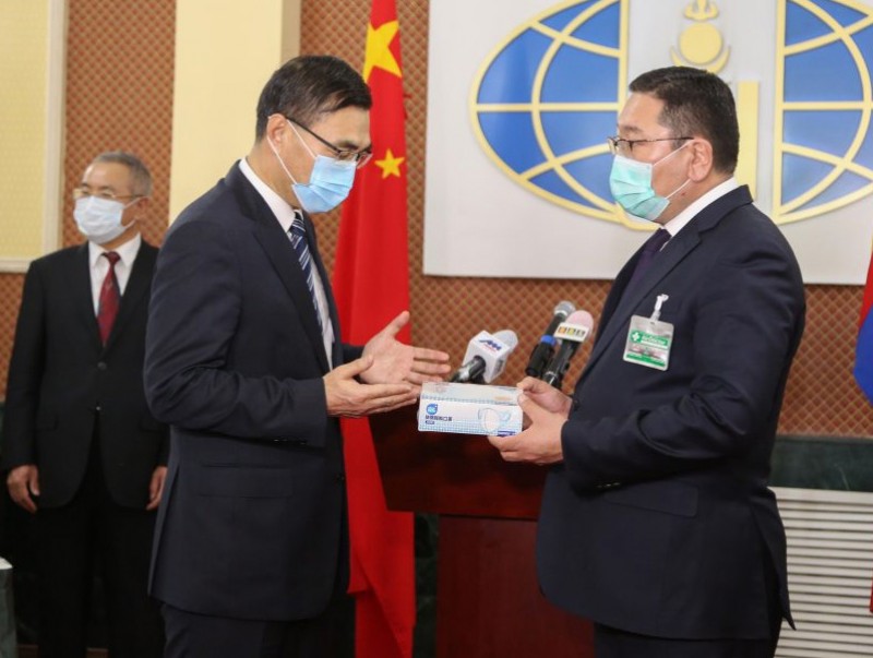БНХАУ-аас Монгол Улсад үзүүлж буй хандив тусламжийн ээлжит арга хэмжээ 2020 оны гуравдугаар сарын 31-ний өдөр ГХЯ-ны "Мутрын түшээ" танхимд болов. Ёслолын ажиллагаанд Гадаад харилцааны яамны Төрийн нарийн бичгийн дарга Д.Даваасүрэн, Эрүүл мэндийн яамны Төрийн нарийн бичгийн дарга Я.Амаржаргал, Онцгой байдлын Ерөнхий газрын тэргүүн дэд дарга бригадын генерал Г.Ариунбуян болон БНХАУ-аас Монгол Улсад суугаа Онц бөгөөд Бүрэн эрхт Элчин сайд Чай Вэньрүй тэргүүтэй БНХАУ-ын ЭСЯ-ны ажилтнууд оролцов.