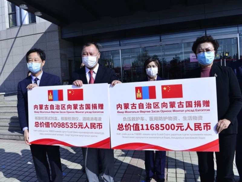 БНХАУ-ын ӨМӨЗО-оос Монгол Улсын Улаанбаатар хотод Сөрөг даралтын түргэн тусламжийн машин, шинэ коронавирусийн оношлуур, сорьц шинжилгээний аппарат болон хамгаалалтын бодис, ариутгалын шингэнийг гардуулан өгөх арга хэмжээ 2020 оны 04 сарын 10-ны өдрийн 09:00 цагт ӨМӨЗО-ы Ардын засгийн ордонд болов. Тус арга хэмжээнд ӨМӨЗО-ы тэргүүлэгч Бу Сяолин, Монгол Улсаас Хөх хотод суугаа Ерөнхий консул С.Батхуяг, ӨМӨЗО-ы дэд тэргүүлэгч, Улаан загалмайн нийгэмлэгийн тэргүүн Оуяан Сяохуй, Монгол Улсаа Хөххотод суугаа ЕКГ-ын консул Б.Гантулга, ӨМӨЗО-ы Нарийн бичгийн дарга Бао Жэнь Юй, ӨМӨЗО-ы Улаан загалмай нийгэмлэгийн дэд тэргүүлэгч Ван Фан, ӨМӨЗО-ы Гадаад хэрэг эрхлэх газрын дарга Фу Юнчинь болон албаны бусад хүмүүс оролцлоо.