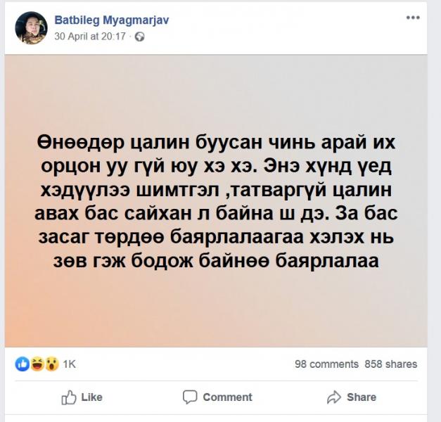 АНХААРУУЛГА: Уншигчдын бичсэн сэтгэгдэлд MNB.mn хариуцлага хүлээхгүй болно. ТА сэтгэгдэл бичихдээ хууль зүйн болон ёс суртахууны хэм хэмжээг хүндэтгэнэ үү. Хэм хэмжээг зөрчсөн сэтгэгдэлийг админ устгах эрхтэй. Сэтгэгдэлтэй холбоотой санал гомдолыг 70127055 утсаар хүлээн авна.