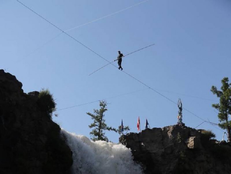 Экстрем уран бүтээлч М.Мягмарсайхан өнгөрсөн онд Өвөрхангай аймгийн Улаанцутгалан дээгүүр 28 метрийн өндөрт, 57 метр замыг утсан дээгүүр ямар ч хамгаалалтгүй тэнцвэртэй алхалт хийж туулж байсан юм.