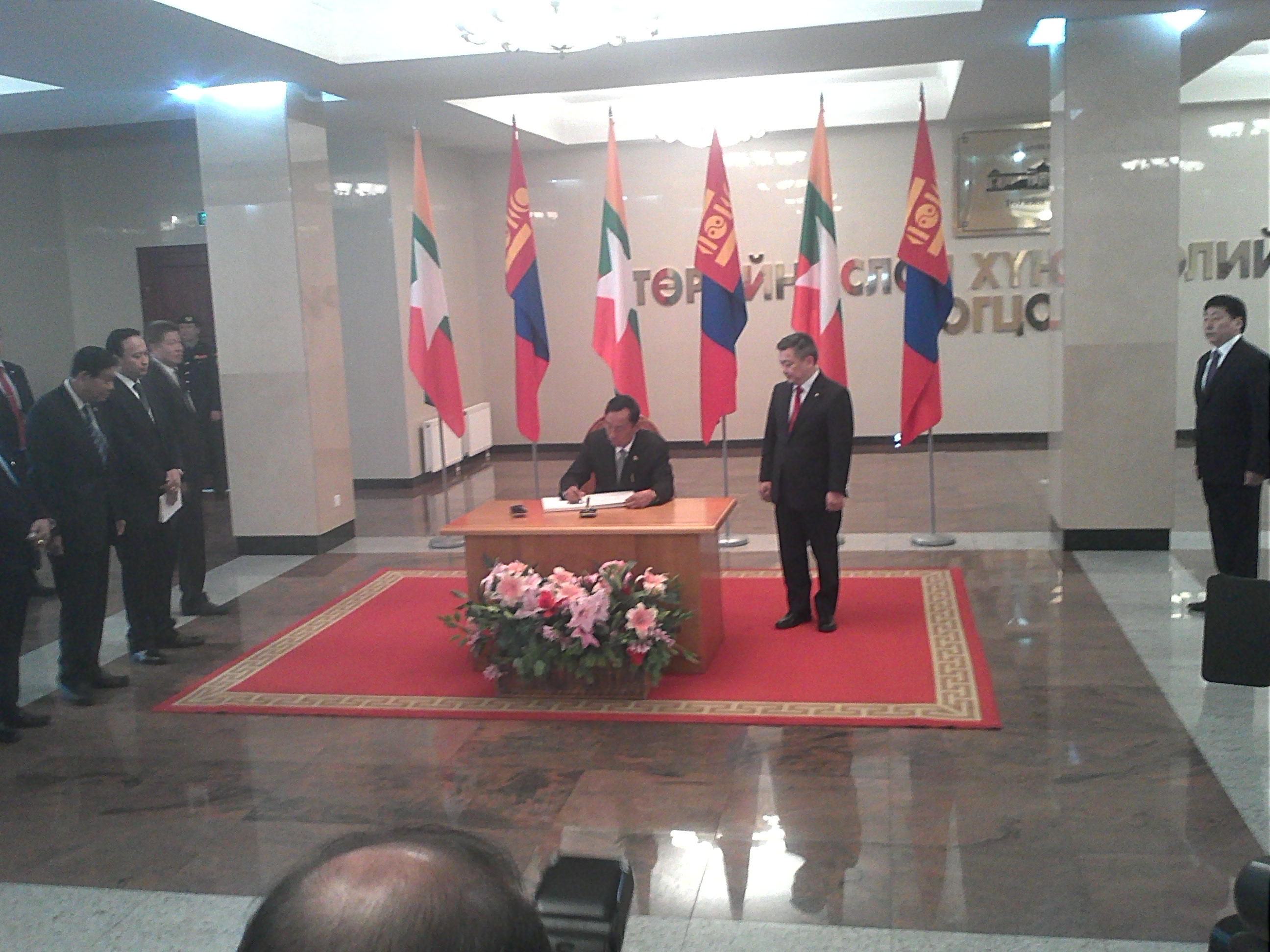 Харин өнөөдөр Мьянмарын Холбооны Бүгд Найрамдах Улсын Холбооны парламентийн дарга бөгөөд Төлөөлөгчдийн танхимын дарга Тура У Швэ Манн болон албаны бусад хүмүүсийг УИХ-ын дарга З.Энхболд хүлээн авч уулзаж байна.