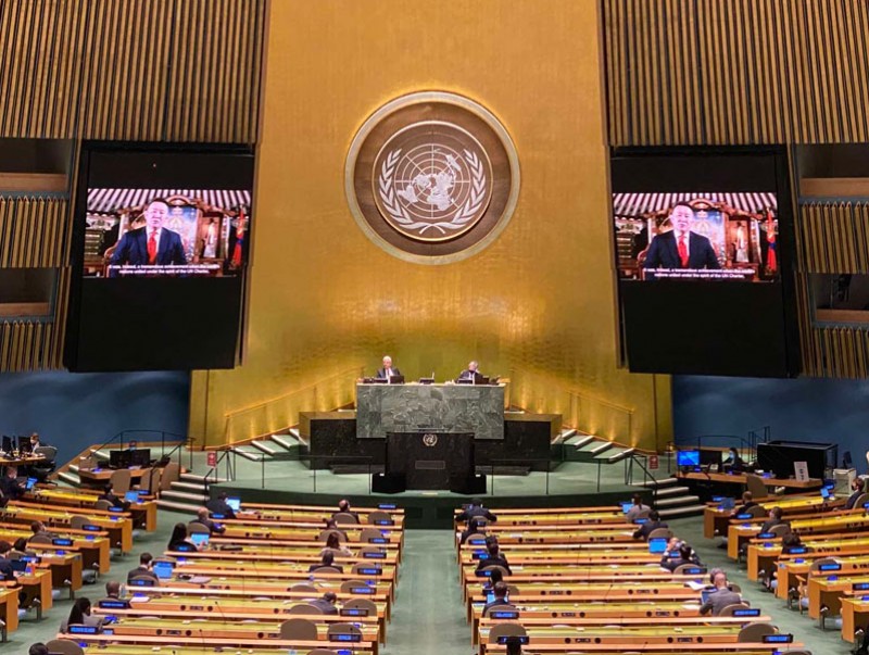 АНУ-ын Нью-Йорк хотноо есдүгээр сарын 22-29-ний өдрүүдэд үргэлжилж буй НҮБ-ын Ерөнхий ассамблейн 75 дугаар чуулганы Ерөнхий санал шүүмжлэлд Монгол Улсын Ерөнхийлөгч Халтмаагийн Баттулга цахимаар оролцож, есдүгээр сарын 23-ны өдрийн хуралдаанд үг хэллээ.