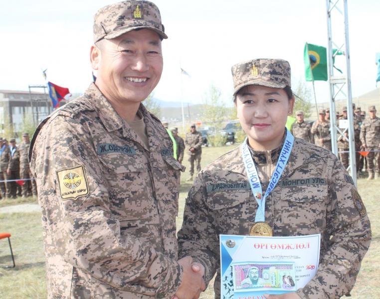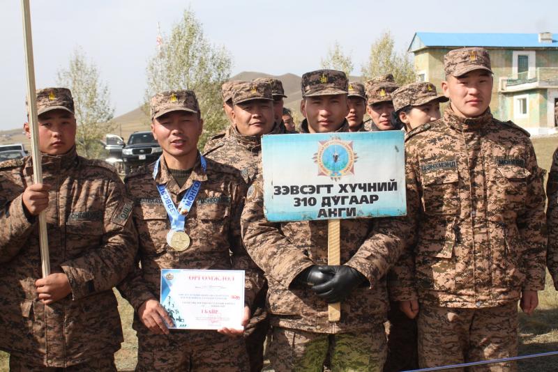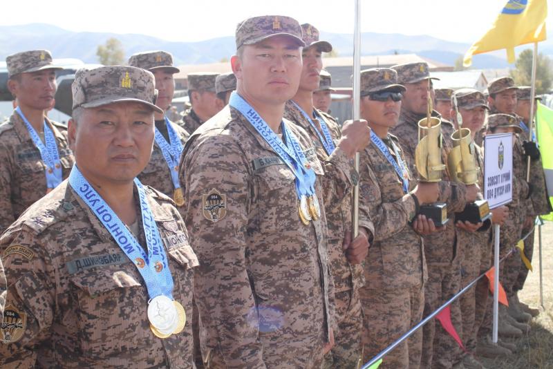 Гүйлтийн төрөлд нэгдүгээр байрт Зэвсэгт хүчний 120 дугаар ангийн тамирчин, дэд ахлагч Б.Цолмонбаатар 11.04 цагийн амжилтаар, хоёрдугаар байрт Зэвсэгт хүчний 016 дугаар нэгтгэлийн тамирчин, ахлагч Л.Лхагва 11.10 цагийн амжилтаар, гуравдугаар байрт Зэвсэгт хүчний 327 дугаар ангийн тамирчин, ахлагч Б.Очироо 11.28 цагийн амжилтаар шалгарсан байна. Тус төрөлдөө хувийн нийлбэр дүнгээр Зэвсэгт хүчний 327 дугаар ангийн дэд ахлагч Б.Гэрэл-Од 236 оноогоор нэгдүгээр байр, Зэвсэгт хүчний 327 дугаар ангийн тамирчин, ахлагч С.Батцэнгэл 228 оноогоор хоёрдугаар байр, Зэвсэгт хүчний 084 дүгээр ангийн тамирчин, ахлагч А.Алтансүх 221 оноогоор гуравдугаар байр эзлэв. Цэргийн гурван төрөлтийн нийлбэр дүнгээр тэргүүн байрт хурандаа Б.Хаш-Эрдэнэ захирагчтай Зэвсэгт хүчний 084 дүгээр анги 1490 оноогоор тэргүүлж, дэд хурандаа Т.Тогмиддүүмий захирагчтай Зэвсэгт хүчний 327 дугаар анги 1489 оноогоор дэд байрт, хурандаа Т.Лодойдамба захирагчтай Зэвсэгт хүчний 016 дугаар нэгтгэл 1337 оноогоор гуравдугаар байрт шалгарлаа. Тэгвэл цэрэгжлийн буудлагын гар бууны эрэгтэйчүүдийн төрөлд ахмад С.Батбаатар (310), ахмад Л.Гансүлд (089), ахмад У.Ганбаатар (337) нар тэргүүлсэн бол эмэгтэйчүүдийн төрөлд хошууч Б.Эрдэнэбулган (065), ахлах дэслэгч Б.Даваажав (330), ахлагч Б.Өлзийсүрэн (311) нар эхний байруудад хошуучиллаа. Хурдан буудлагын эрэгтэйчүүдийн төрөлд хошууч З.Мөнхзул (314), ахмад С.Батбаатар (310), ахлах ахлагч Н.Өлзийжаргал (150) нар, эмэгтэйчүүдийн төрөлд ахлах дэслэгч Л.Алтанхуяг (284), ахлах дэслэгч Т.Дэлгэрмаа (084), хошууч П.Маамуу (345) нар эхний байруудад шалгарлаа. Харин автомат буудлагын эрэгтэйчүүдийн төрөлд ахлах ахлагч Ж.Оюунгэрэл (013), ахлах ахлагч Ц.Баясгалан (350), ахлах ахлагч М.Буяндэлгэр (150) нар тэргүүлсэн бол эмэгтэйчүүдийн төрөлд ахмад М.Хишгээ (150), ахлагч А.Эрдэнэчимэг (016), ахлагч Н.Амаржаргал (084) нар эхний шагналт байруудад шалгарсан юм. Цэрэгжлийн буудлагын нийт дүнгээр хурандаа Б.Хаш-Эрдэнэ захирагчтай Зэвсэгт хүчний 084 дүгээр анги тэргүүлж, хурандаа Т.Лодойдамба захирагчтай Зэвсэгт хүчний 016 дугаар нэгтгэл удаалж, хурандаа Ж.Баясгалан захирагчтай Зэвсэгт хүчний 310 дугаар ангийн баг тамирчид гуравдугаар байрт шалгарсан юм. Хариэ мэргэн буудагчийн хоёр төрөлтийн биатлоны төрөлд нэгдүгээр байрт Зэвсэгт хүчний 016 дугаар нэгтгэлийн тамирчин, ахлах дэслэгч Б.Ариунболд, хоёрдугаар байрт Зэвсэгт хүчний 327 дугаар ангийн тамирчин, ахлагч Б.Элбэгдорж, гуравдугаар байрт Зэвсэгт хүчний 350 дугаар ангийн тамирчин, ахлах ахлагч Ц.Баясгалан шалгарлаа. Харин патрулийн төрөлд Зэвсэгт хүчний 330 дугаар ангийн баг тэргүүлж, Зэвсэгт хүчний 336 дугаар ангийн баг хоёрдугаар байрт, Зэвсэгт хүчний 084 дүгээр ангийн баг гуравдугаар байр эзэлсэн юм. Байгууллагын нэгдсэн дүнгээр дэд хурандаа Бат-Эрдэнэ захирагчтай Зэвсэгт хүчний 330 дугаар анги тэргүүлж, хурандаа Б.Хаш-Эрдэнэ захирагчтай Зэвсэгт хүчний 084 дүгээр анги удаалж, хурандаа Ж.Сүх-Очир захирагчтай Зэвсэгт хүчний 350 дугаар ангийн баг тамирчид гутгаар байрт шалгарлаа.