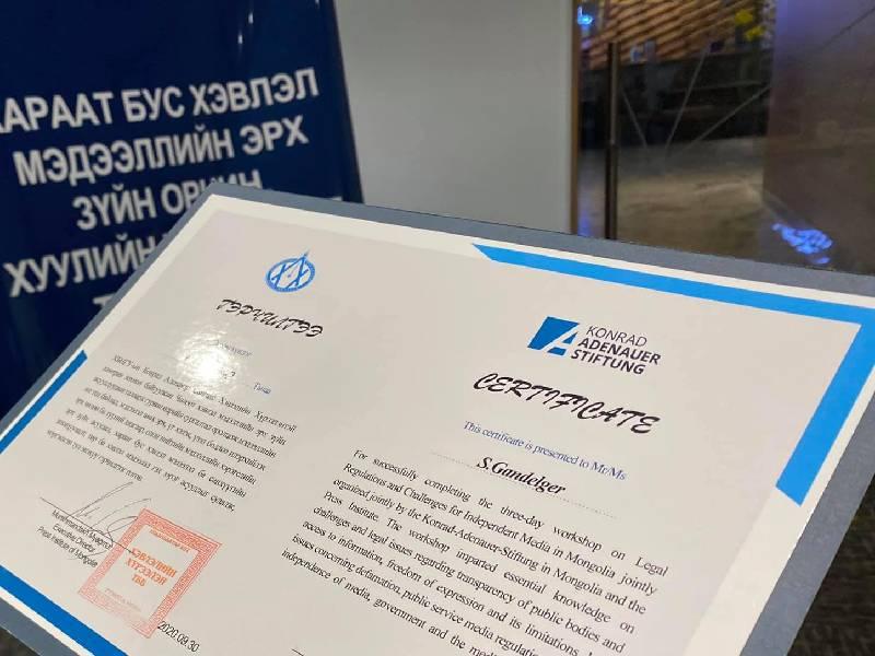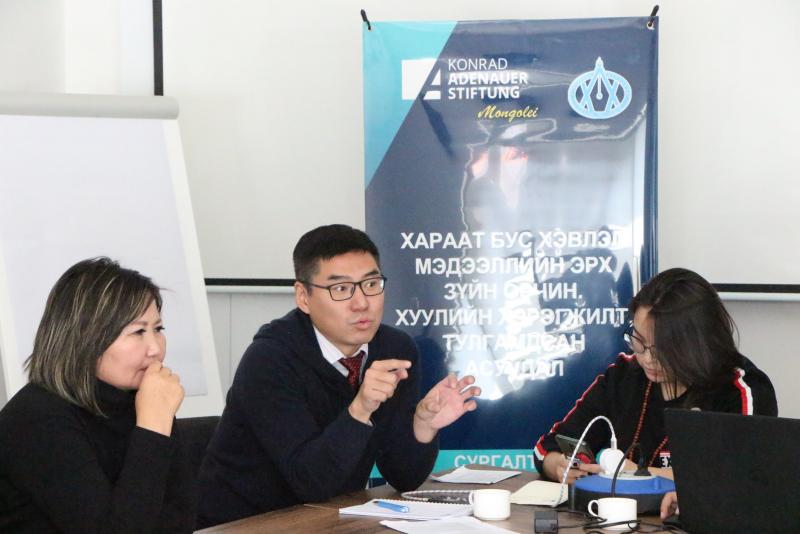 Түүнчлэн тус сургалтад хэвлэл мэдээллийн байгууллагын удирдлага, сэтгүүлч, ажилтнууд зэрэг гурван үеийн төлөөлөл 20 орчим хүн хамрагдаж "Монголын хэвлэл мэдээллийн өнөөгийн байдал, эрх зүйн орчин", "Нээлттэй өгөгдлийн чиг хандлага, зохицуулалт", "Хараат бус хэвлэл мэдээллийн тухай ойлголт", "Олон нийтийн радио, телевизийн хараат бус байдал", "Хэвлэл мэдээллийн санхүүгийн тогтвортой байдал, хэвлэлийн эрх чөлөө", "Хэвлэл мэдээллийн эзэмшил, төвлөрлийн эрх зүйн асуудлууд", "Мэдээлэл авах эрх: түүх, олон улсын чиг хандлага, бэрхшээл", Төрийн байгууллагуудын ил тод байдал. Мэдээлэл авахад тулгардаг бэрхшээл", "Цахим эрин дэх мэдээллийн эх сурвалжийн нууц, аюулгүй байдлын зохицуулалт", "Монгол дахь хараат бус хэвлэл мэдээллийн эрх зүйн зохицуулалт, сайжруулах хэрэгцээ шаардлага" сэдвээр мэргэшүүлэх сургалт авч, хэлэлцүүлэг зохион байгууллаа.