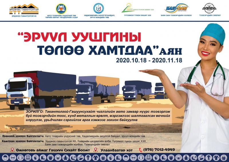 ХНХЯ-ны харьяа Хөдөлмөрийн аюулгүй байдал, эрүүл мэндийн төвөөс Авто тээврийн үндэсний төв, Эрдэнэс Тавантолгой ХК, Тээврийн цагдаагийн алба, Түгээмэл түмэн хишиг компани, Баян зам тээвэрчдийн холбоо, Тээвэрчдийн зөвлөлтэй хамтран “Эрүүл уушгины төлөө хамтдаа” аян эхлүүлж буйгаа зарлалаа. Уг аяны гол зорилго нь Тавантолгой-Гашуунсухайт чиглэлийн автозамаар нүүрс тээвэрлэж буй тээвэрчдийн тоос, хүнд металлын өртөлт, мэргэжлээс шалтгаалсан өвчнийг илрүүлэх, урьдчилан сэргийлэх юм байна.