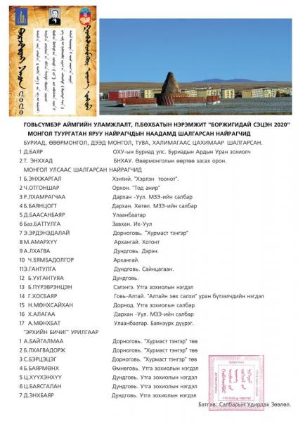 | “Боржигидай сэцэн-2020” яруу найргийн наадам маргааш Говьсүмбэр аймагт болно | ||