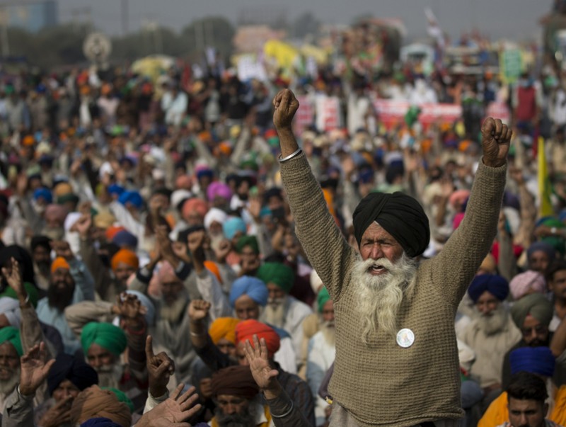 Энэтхэгийн тариаланчид засгийн газрынхаа эсрэг жагсаал хийж байна. Тэд өнгөрсөн 9 дүгээр сард батлагдсан газар тариалангийн салбартай холбоотой шинэ хуулийг хүчингүй болгохыг шаардаж байгаа юм.