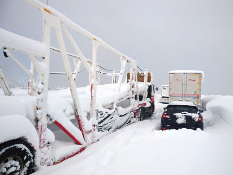 Энэ мужид 12 дугаар сарын 14-нөөс хойш 2 метр орчим хур тунадас орж, тээврийн харилцаа нь зогсоход хүрчээ. Зарим зам хаагдаж, хэдэн зуун автомашин цасанд боогдсон байна. Энэ тухай Сайд нарын танхимын Ерөнхий нарийн бичгийн дарга Кацүнобү Като “Замын тодорхой хэсэг хаагдаж, олон машин боогдсон, хөдлөх боломжгүй болсон мэдээллийг бид авсан. Энэ асуудлыг хэлэлцэхээр өнөөдөр тухайн үүрэг, чиглэлийн сайд нар уулзалдана” гэж мэдэгджээ.