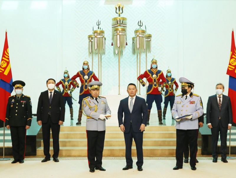 Монгол Улсын Ерөнхийлөгчийн зарлигийн дагуу цэргийн дээд цол гардуулах ёслолын үйл ажиллагаа өнөөдөр Төрийн ордны Ёслол, хүндэтгэлийн Их танхимд болж, цолыг Монгол Улсын Ерөнхийлөгч, Зэвсэгт хүчний Ерөнхий командлагч Халтмаагийн Баттулга гардуулав.