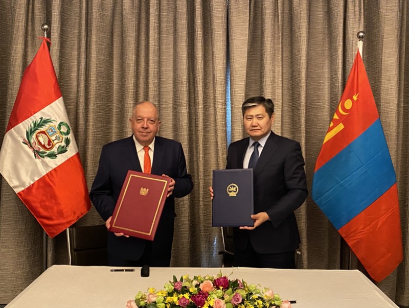 Монгол Улс “Энгийн паспорт эзэмшигчдийг жуулчны визийн шаардлагаас чөлөөлөх тухай Монгол Улс болон Бүгд Найрамдах Перу Улс хоорондын хэлэлцээр”-ийг 2021 оны тавдугаар сарын 26-ны өдөр Бээжин хотноо байгуулав.