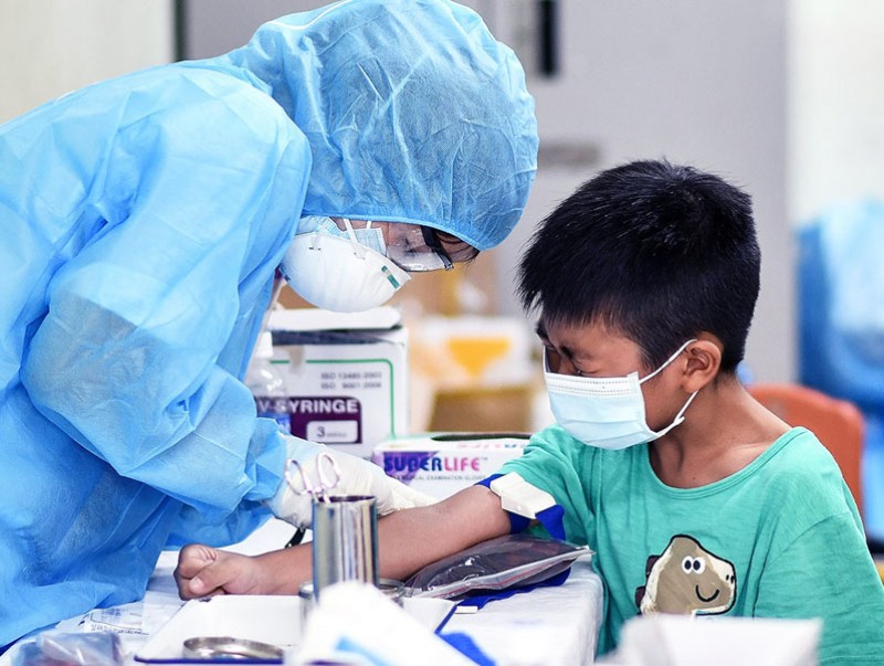 Коронавирусний эсрэг вакциныг хийлгэхээр дараалан зогсож буй олон зуун хүүхдийн ихэнх нь эцэг, эхийгээ дагуулан иржээ. Камбожийн засгийн газар энэ оны 11 дүгээр сар гэхэд 12-17 насны нийт 2 сая хүүхэд, өсвөр насныхныг вакцинжуулалтад хамруулсан байх зорилтыг тавиад байгаа юм.