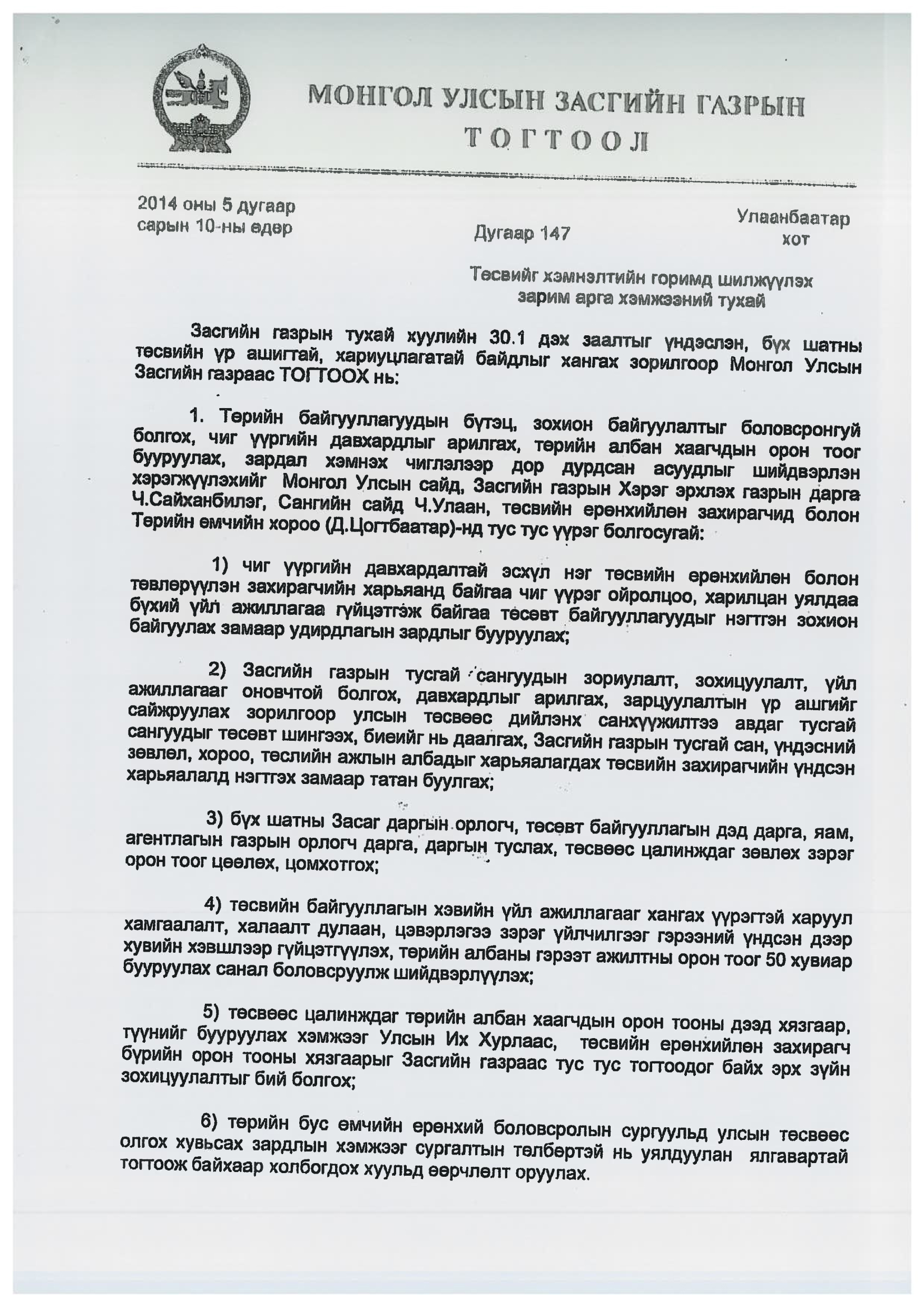 | Засгийн газар улсын төсвийг хэмнэхээр шийджээ | ||