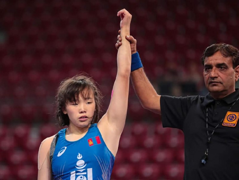 Тэрбээр 55 кг-ын жинд уржигдар 1/8 шигшээд Кыргызстаны Калмира Билимбек Кызыд 4:6-гаар ялагдсан. Түүний өрсөлдөгч шигшээд шалгарснаар өчигдөр үдээс өмнө нь дагахад АНУ-ын Пэйтон Строудыг 10:0-ээр, хүрэл медалийн төлөөх барилдаанд ОХУ-ын Анастасья Яндушкинаг цэвэр ялснаар шагналын тавцанд зогслоо.