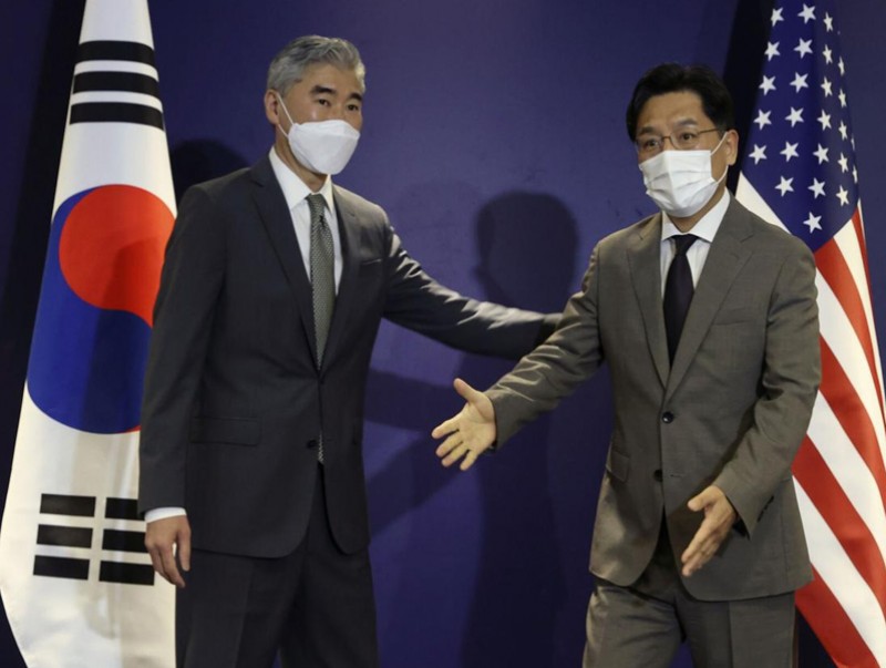 Өмнөд Солонгост дөрөв хоногийн ажлын айлчлал хийж байгаа АНУ-ын Ерөнхийлөгчийн Умард Солонгосын асуудал хариуцсан тусгай төлөөлөгч Сён Ким Солонгосын хойгийн энх тайван, аюулгүй байдлын асуудал эрхэлсэн Өмнөд Солонгосын тусгай төлөөлөгч Но Кю Дюктэй уулзалт хийжээ.