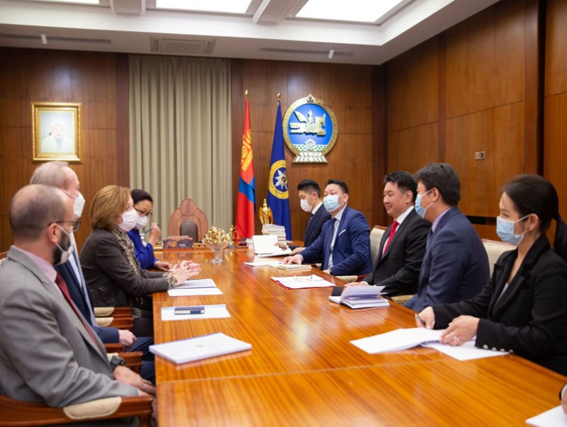 Монгол Улсын Ерөнхийлөгч У.Хүрэлсүх өнөөдөр Европын сэргээн босголт, хөгжлийн банк /ЕСБХБ/-ны Төв Азийн бүсийн захирал Сюзанна Харгитай тэргүүтэй төлөөлөгчдийг хүлээн авч уулзлаа.