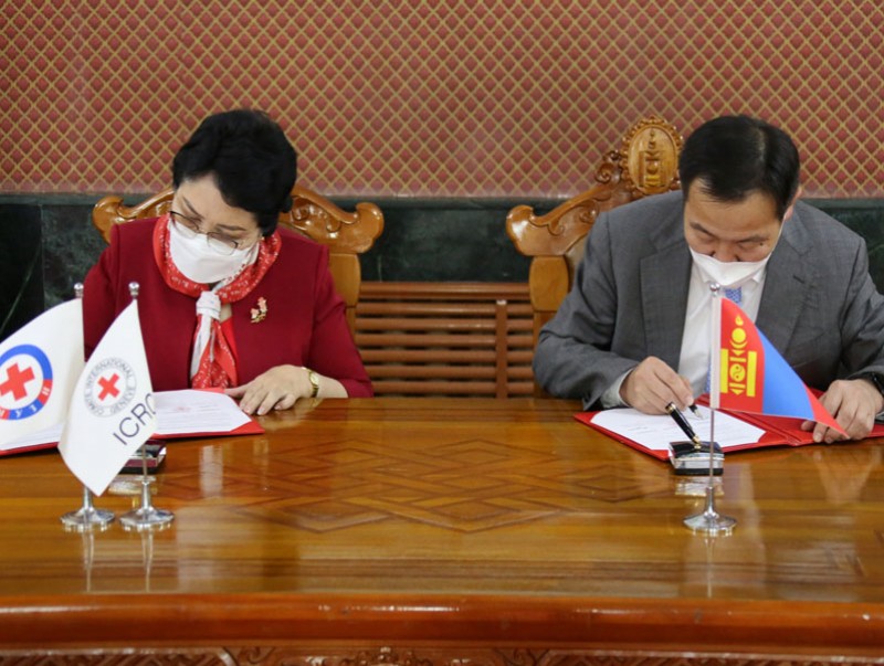 Гадаад харилцааны яамны Төрийн нарийн бичгийн дарга Н.Анхбаяр, Монголын улаан загалмай нийгэмлэгийн Ерөнхий нарийн бичгийн дарга Н.Болормаа нар “Олон улсын хүмүүнлэгийн эрх зүйн гэрээний хэрэгжилтийг үнэлэх судалгааны тухай Монгол Улсын Гадаад харилцааны яам, Олон улсын улаан загалмайн хороо, Монголын улаан загалмай нийгэмлэг хоорондын харилцан ойлголцлын санамж бичиг”-т энэ оны 11 дүгээр сарын 02-ны өдөр гарын үсэг зурав.