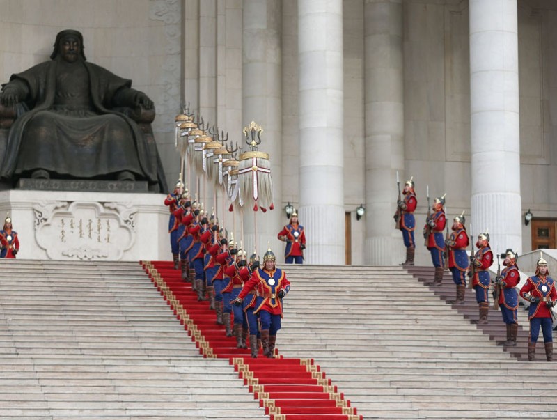 Их цагаан тугийг цэнгүүлэхэд торгон цэргүүд, Төрийн тусгай хамгаалалтынхан дагалдаж, үлээвэр найрал хөгжимд хүндэтгэлийн ая эгшиглэлээ.