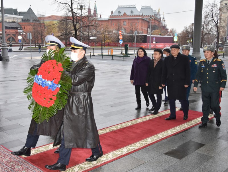 | Москва хот дахь жанжин Д.Сүхбаатарын хүндэтгэлийн самбарт цэцэг өргөв | ||