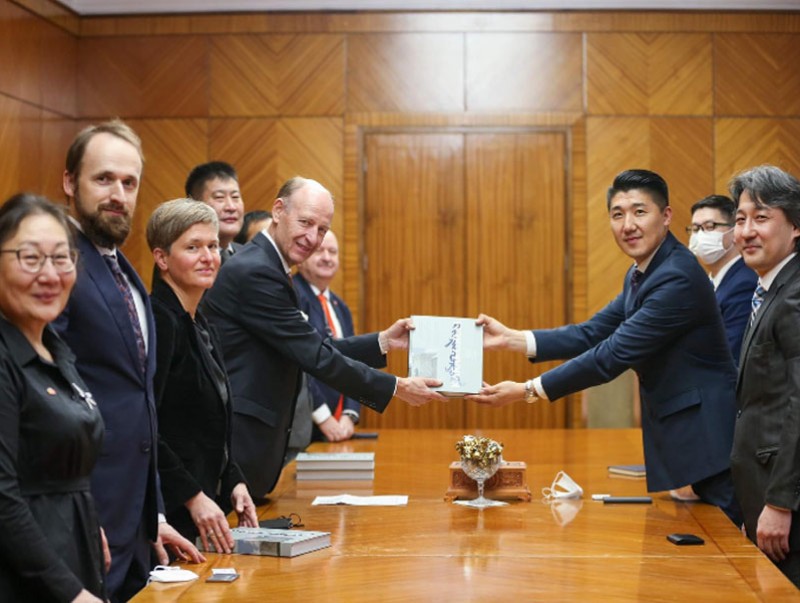 Уулзалтын үеэр хоёр улсын Ерөнхийлөгчийн ивээл дор хэрэгжсэн “Монгол-Германы Хархорум экспедиц”-ийн 20 жилийн судалгааны үр дүн болох гурван хэлээр бичигдсэн “Хархорум” номыг хүлээлгэн өгөв.