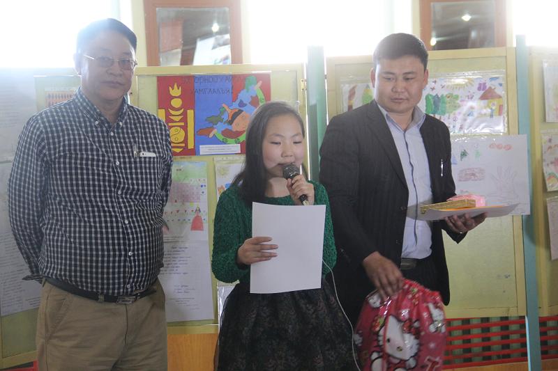 Уралдаанд ирүүлсэн бүтээлүүдээс шүүгчид тэргүүн байруудыг шалгаруулж өнөөдөр болсон өдөрлөгийн үеэр шагналыг нь гардууллаа. Түүнчлэн уралдаанд бүтээлээ ирүүлсэн бүх хүүхдүүдэд гарын бэлэг гардуулав.