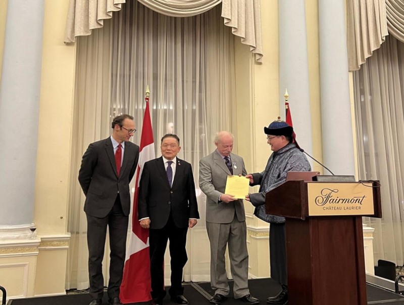 Бүгд Найрамдах Улсаа тунхагласны 97, Монгол Улсад дипломат алба үүсэн байгуулагдсаны 110 жилийн ойд зориулж Монгол Улсаас Канад Улсад суугаа ЭСЯ-наас 12 дугаар сарын 6-ны өдөр зохион байгуулсан хүлээн авалтын үеэр Элчин сайд Я.Ариунболд Тоби Менделд “Найрамдал” медалийг гардууллаа.