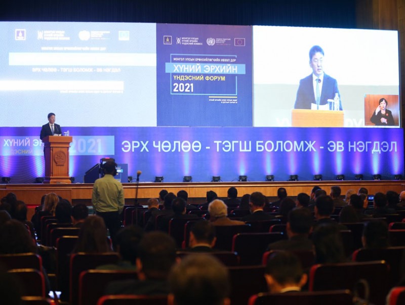 Монгол Улсын Ерөнхийлөгчийн ивээл дор “Хүний эрхийн үндэсний форум-2021” Төрийн ордонд болж байна.