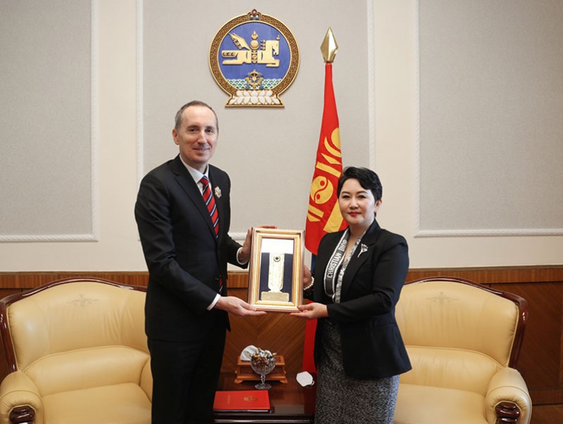 Монгол Улсад байх хугацаандаа гаргасан ажлын амжилт, үр дүн, өнгөрүүлсэн цаг, мөчүүдийн таатай дурсамжийн бэлэг тэмдэг болгон Гадаад харилцааны яамны уламжлалын дагуу “Алтан гэрэгэ”-г сайд Б.Батцэцэг Элчин сайдад гардуулж, цаашдын үйл хэрэгт нь амжилт хүсэв.