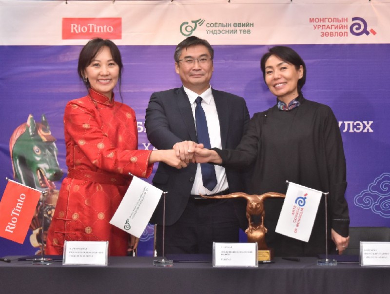 Монголын Урлагийн зөвлөл, Соёлын өвийн үндэсний төв, “Рио Тинто Монгол” компанийн удирдлагууд энэхүү хамтран ажиллах санамж бичигт гарын үсэг зурав.