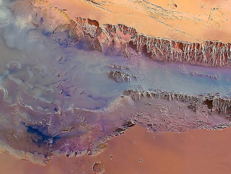 Ангараг гараг дээрх Валлес Маринерис хавцлыг дэлхийн Гранд хавцлын хувилбар гэж нэрлэдэг. Энэхүү хавцлын тогтоц нь Гранд хавцлаас 10 дахин урт, 5 дахин гүн, 20 дахин өргөн юм. Тэгвэл хавцлаас олдсон их хэмжээний усыг Frend төхөөрөмж буюу нарийн нягтралтай эпитермал нейтрон илрүүлэгчээр илрүүлжээ. Энэхүү төхөөрөмж нь Ангарагийн хөрсний дээд метр 3.2 фут өндөр дэх устөрөгчийг зураглах чадвартай юм.