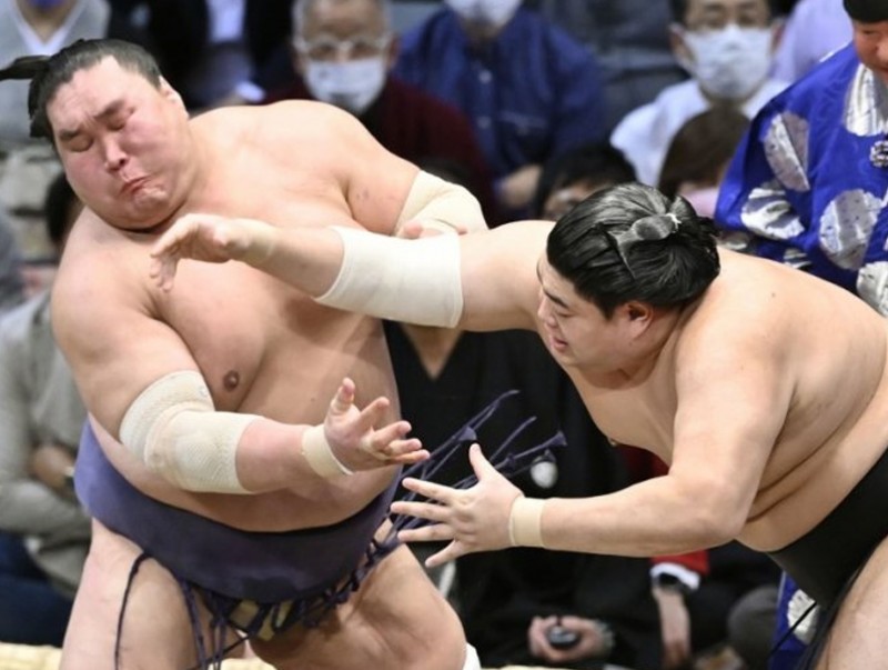 Мэргэжлийн сүмо бөхийн Хацү башёгийн сүүлийн өдрийн барилдаан өчигдөр болж, шийдвэрлэх мөчид Митакэүми Тэрүнофүжиг давж, дээд зиндааны гурав дахь түрүүгээ хүртлээ.