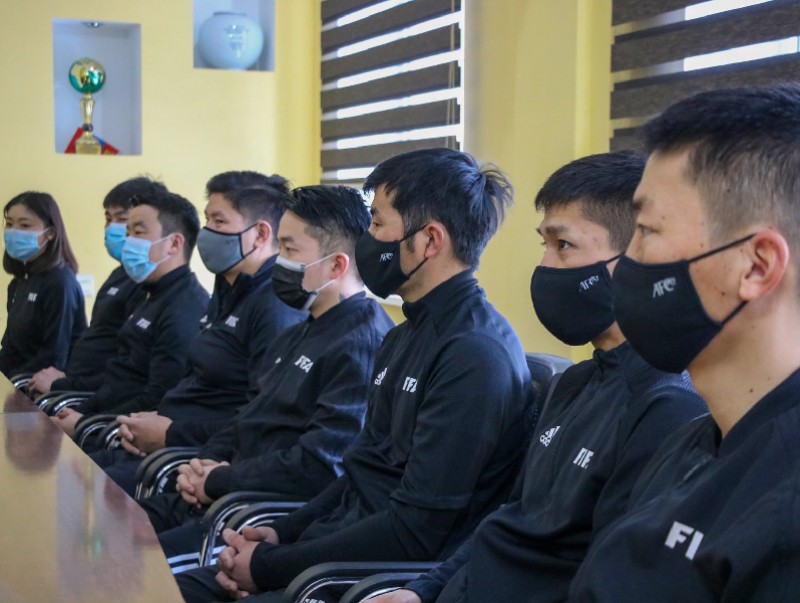 Монголын хөлбөмбөгийн холбооны ЕНБД Д.Тэрбаатар, Спортын мастер ахмад хөлбөмбөгчин Р.Бадамдорж болон Шүүгчийн хэлтсийн дарга Д.Түмэнбаяр нар 2022 оны ОУХБХ-ны шүүгчдийг хүлээн авч уулзаж, энгэрийн тэмдэг болон үнэмлэхийг гардуулан өглөө.