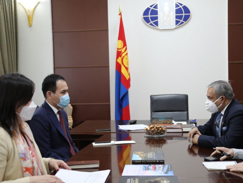Гадаад харилцааны дэд сайд Б.Мөнхжин НҮБ-ын Суурин зохицуулагч Т.Мишраг хоёрдугаар сарын 23-нд хүлээн авч уулзаж, Монгол-НҮБ-ын хамтын ажиллагааны асуудлаар санал солилцов.