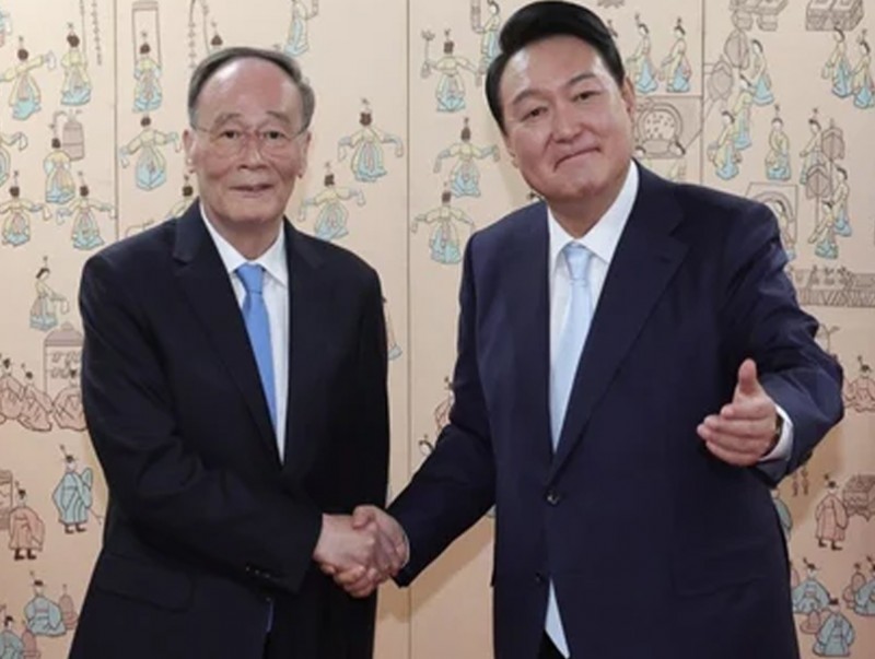 Өмнөд Солонгосын шинээр сонгогдсон Ерөнхийлөгч Юн Сок Ёль мягмар гарагт тангараг өргөх ёслолд нь хүрэлцэн ирсэн гадаад орнуудын өндөр дээд албаны зочдыг хүлээн авч уулзжээ. Түүний дотор БНХАУ-ын дэд дарга Ван Чишаньтай хэлэлцээ хийсэн талаар "Эн-Эйч-Кей" мэдээллээ.