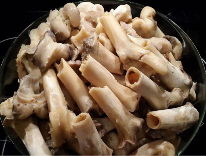Хонины чөмгийг шулаад ташиж битvv чанагчид хийж буцлаад эхлэнгvvт галыг багасгаж хамгийн бага дээр нь тавиад 5-10цаг буцалгана. (жижиг газ 1-ш нь 5-орчим цаг асна). Ингээд чөмөгний ясны шим шүүс, эрдэс бодис шөлөнд шингэх ба ясыг ялган авч хаяна. Шөлийг сайтар хөргөнө.
