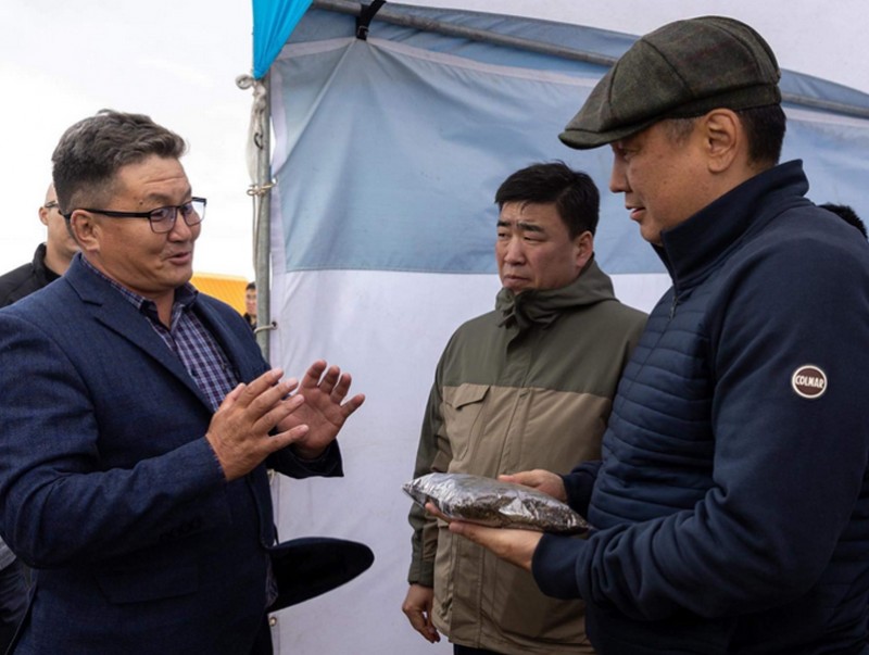 Монгол Улсын Ерөнхийлөгч Ухнаагийн Хүрэлсүх Хэнтий аймагт ажиллах үеэрээ Хэрлэн сумын нутагт хэрэгжих “Хүнсний ногооны үйлдвэрлэл ба усалгаатай газар тариалан” төслийн явцтай танилцлаа.
