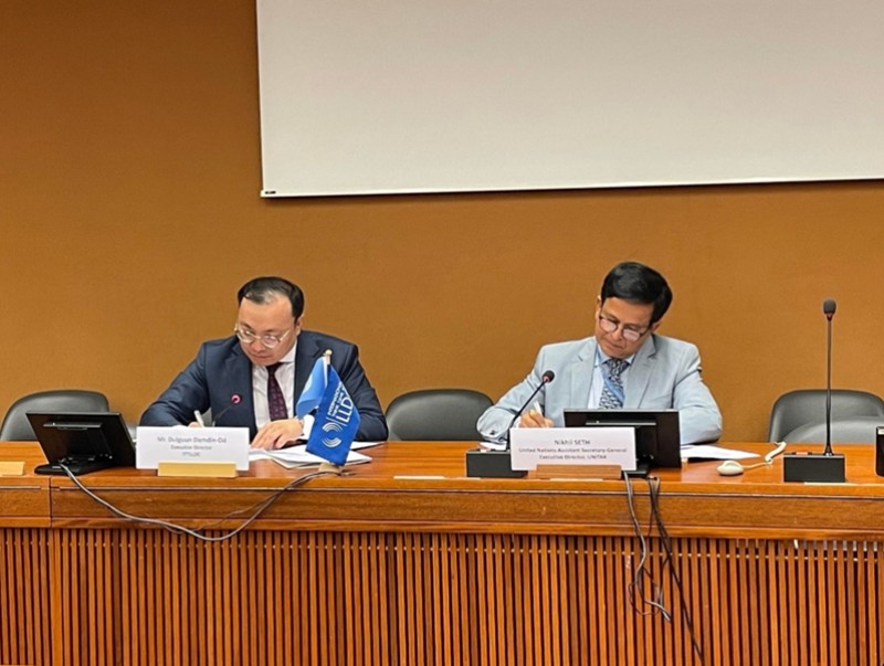 Далайд гарцгүй хөгжиж буй орнуудын (ДГХБО) Олон улсын судалгааны төв (ОУСТ) болон НҮБ-ын Сургалт, судалгааны хүрээлэн хооронд ДГХБО-уудын мэргэжилтнүүдийн чадавхыг бэхжүүлэх чиглэлээр хамтран ажиллах тухай Харилцан ойлголцлын санамж бичигт Женев хотноо 2022 оны зургаадугаар сарын 17-ны өдөр гарын үсэг зурав.