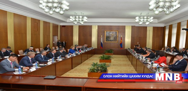 УИХ-ын дарга З.Энхболд, УИХ-ын дэд дарга Л.Цог болон зарим УИХ-ын гишүүд манай улсад албан ёсны айлчлал хийж буй ОХУ-ын Холбооны Хурлын Холбооны Зөвлөлийн дарга хатагтай Валентина Ивановна Матвиенко тэргүүтэй төлөөлөгчид хэлэлцээ хийж байна.