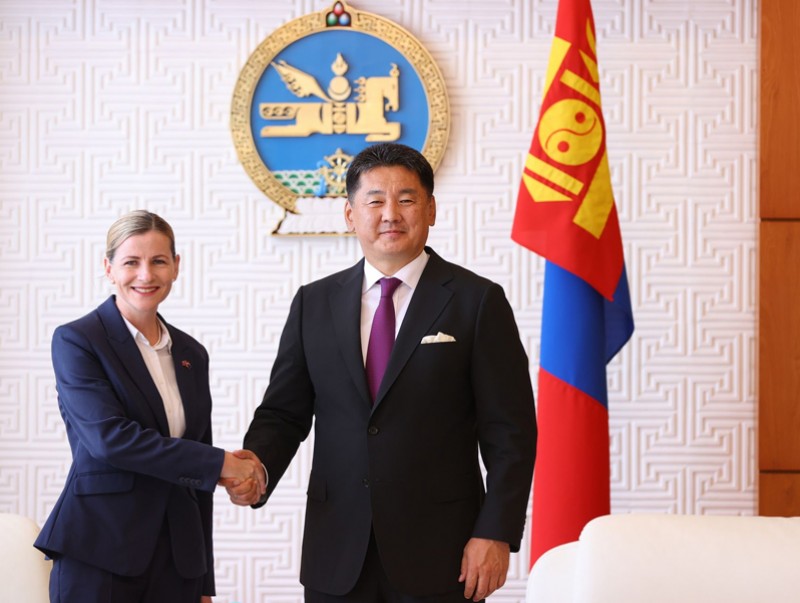 Австралийн Холбооны Улсаас Монгол Улсад суух Онц бөгөөд Бүрэн эрхт Элчин сайд Кэти Смит Монгол Улсын Ерөнхийлөгч Ухнаагийн Хүрэлсүхэд Итгэмжлэх жуух бичгээ өргөн барилаа.