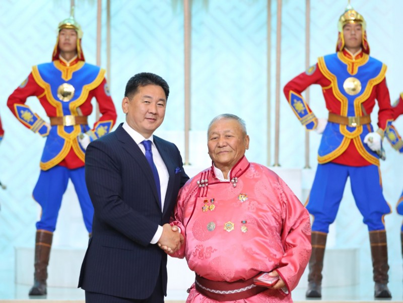 Тулгар Төрийн 2230, 2231, Их Монгол Улсын 815, 816, Үндэсний эрх чөлөө, тусгаар тогтнолоо сэргээн мандуулсны 110, 111, Ардын хувьсгалын 100, 101 жилийн ойг тохиолдуулан Монгол Улсын Ерөнхийлөгч Ухнаагийн Хүрэлсүх амжилт бүтээлээрээ шалгарсан эрхмүүдэд төрийн дээд цол, одон, медаль гардуулж байна.