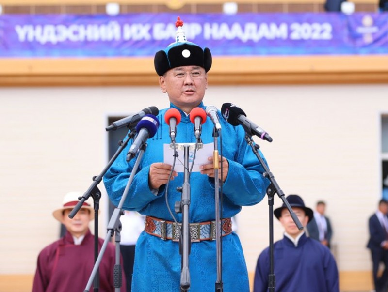 Хүчит бөхчүүдийн дэвээ шаваа хүй мандлаа дүүргэж, аргамаг хурдан хүлгүүдийн төвөргөөн тал нутгаа донсолгож, эрхий мэргэн харваачдын эрчит сум хөх тэнгэртээ исгэрч, саруул ухаант, өндөр заяат миний Монголын ард түмэн хотол олноороо дэнж хотойтол дэлгэр сайхан наадаарай.