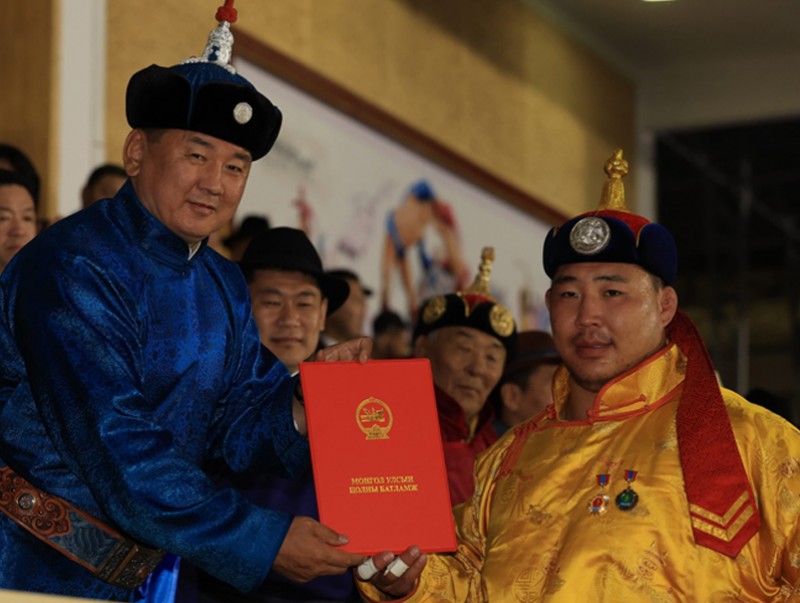 Монгол Улсын Ерөнхийлөгч Ухнаагийн Хүрэлсүх өнөөдөр зарлиг гаргаж, Тулгар төрийн 2230, 2231, Их Монгол Улс байгуулагдсаны 815, 816, Үндэсний эрх чөлөө, тусгаар тогтнолоо сэргээн мандуулсны 110, 111, Ардын хувьсгалын 100, 101 жилийн ойн Улсын баяр наадмын Үндэсний бөхийн барилдаанд арав даван түрүүлсэн Ховд аймгийн Буянт сумын харьяат, “Аврагч” спорт хороо, “Ховд” дэвжээний бөх Оргихын Хангайд “Улсын аварга” цол олголоо.